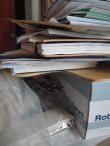 On the floor is a stack of primed canvases that I bought on sale, on speculation. I like to think, that I’ll get out and paint, that I’ll wander the universe and record the wonders. They are prepped with fresh gesso and ready to go. Beneath them is the anti-matter to this painting potential, a box of vintage clothing patterns.